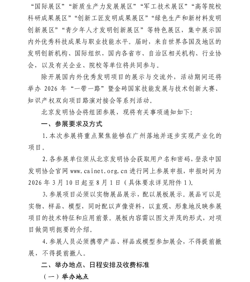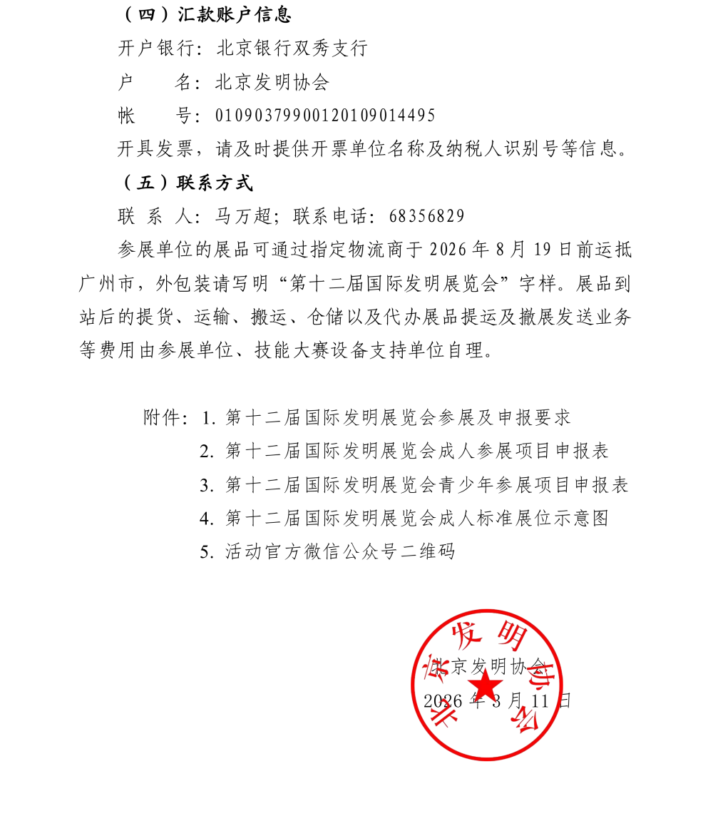 北京发明协会关于组织2026年第十二届国际发明展览会的通知